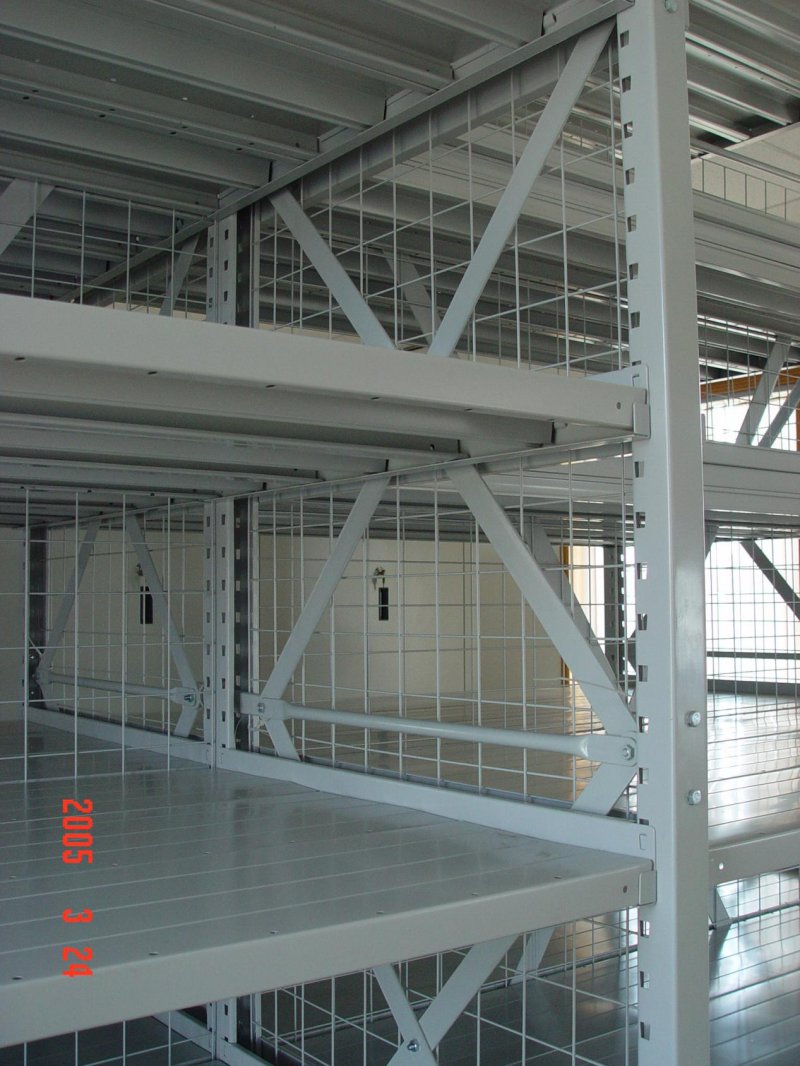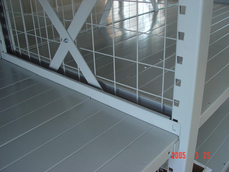 Easy Assemble Metal Shelving隔板式貨架是中型貨架系列中常用的一種,由立柱、橫梁、寬掛、窄掛、防脫鎖聯接而成。更上層與更下層層板為固定式,中間任一塊層板可調節,節距為50mm,可以使客戶根據貨物的體積大小來調節間距。相比其他類型貨架,沒有橫梁使得高度空間更大,也更容易安裝。易裝貨架的零部件采取冷沖模機械沖孔定位,保證其一致性。貨架不需要螺栓,只需要插接,除頂部和底部外,均可以以50mm為單位隨意調節高度。