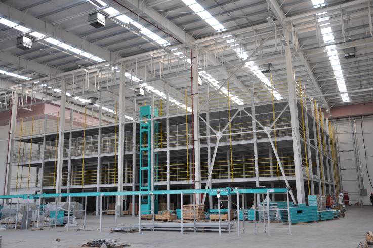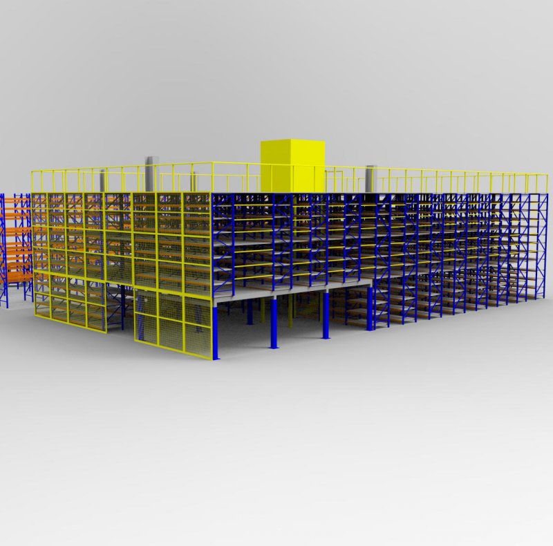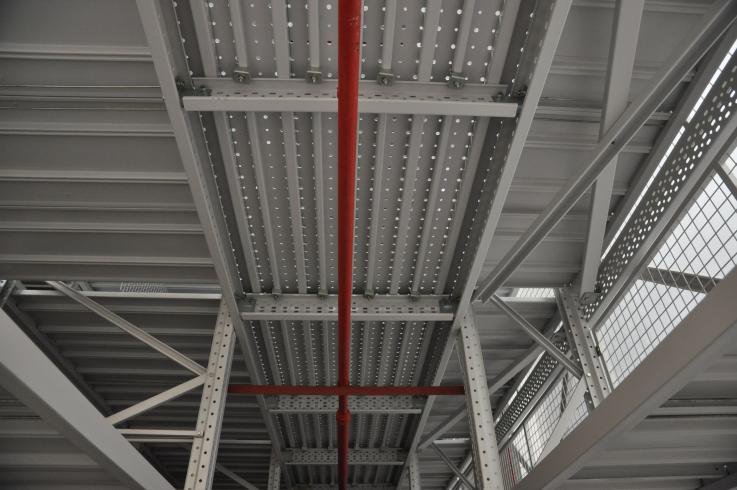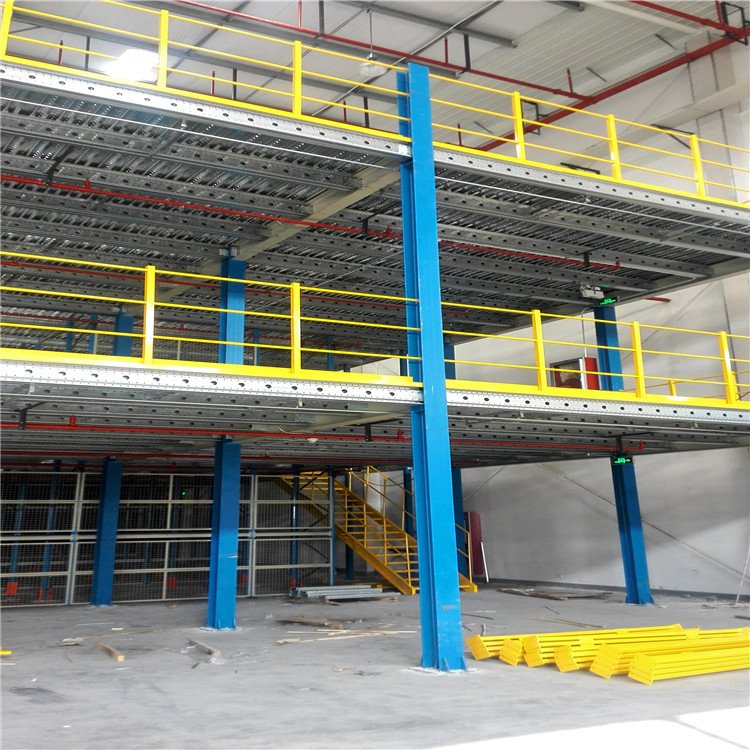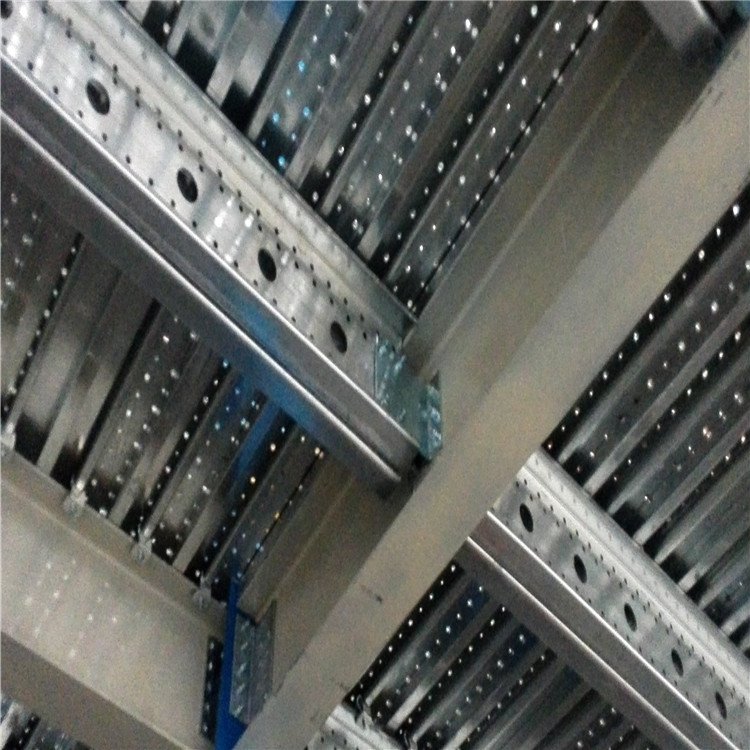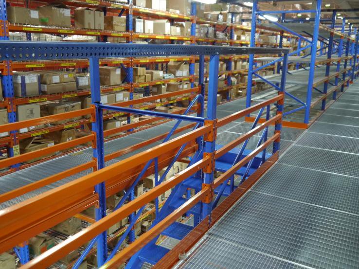 閣樓貨架系統(tǒng),通常利用中型擱板式貨架或重型擱板式貨架作為主體支撐加上樓面板(根據(jù)貨架單元的總負(fù)載重量來決定選用何種貨架),樓面板通常選用冷軋型鋼樓板、花紋鋼樓板或鋼格柵樓板。近幾年多使用冷軋型鋼樓板,它具有承載能力強(qiáng)、整體性好、承載均勻性好、精度高、表面平整、易鎖定等優(yōu)勢.有多種類型可選,并且易匹配照明系統(tǒng),存取、管理均較為方便。單元貨架每層載重量通常在500kg以內(nèi),樓層間距通常為2.2m~2.7m,頂層貨架高度一般為2m左右,充分考慮工作人員操作的便利性。