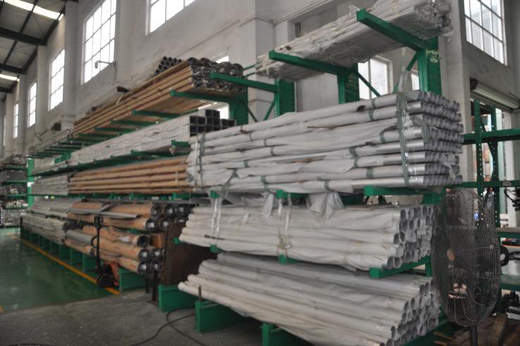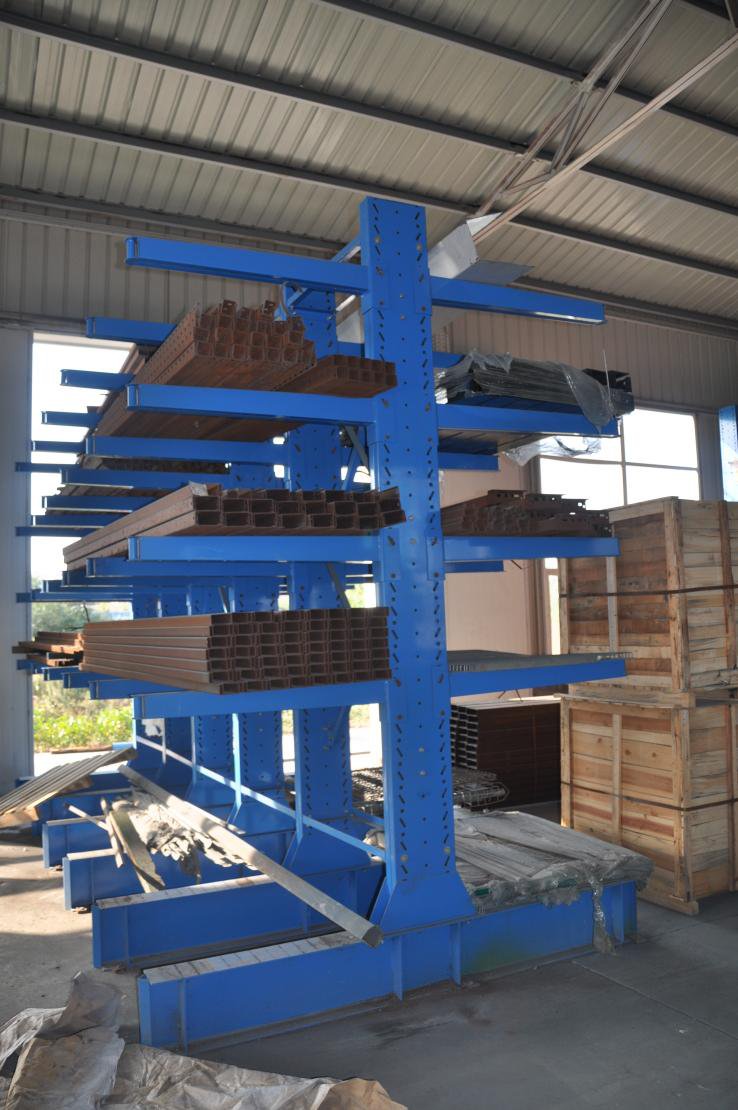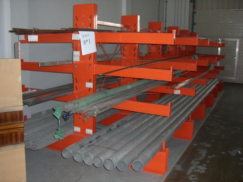 存放鋼制管件或者鋁制型材等,產(chǎn)品本身的長(zhǎng)度一般為6m。輕型懸臂貨架和中型懸臂貨架是人工存放的貨架系統(tǒng)。通道尺寸1000-1500mm。高度一般為2m。 在配套叉車使用后,高度可以做到5-12m。通道尺寸為2800-3000mm。需要使用專業(yè)叉車操作,這類貨架由于高度增加,和本身防止叉車作業(yè)風(fēng)險(xiǎn)的保護(hù)。會(huì)采用重型懸臂貨架要求設(shè)計(jì)。 懸臂可以是單面或雙面,懸臂式貨架具有結(jié)構(gòu)穩(wěn)定,載重能力好、空間利用率高等特點(diǎn)。 懸臂式貨架多用于機(jī)械制造行業(yè)和建材超市等。加了擱板后,特別適合空間小,高度低的庫(kù)房,管理方便,視野寬闊,利用率比普通貨架更高。懸臂式貨架是在傳統(tǒng)式貨架支柱上裝設(shè)外懸臂而成,是一種長(zhǎng)形物專用的貨架。