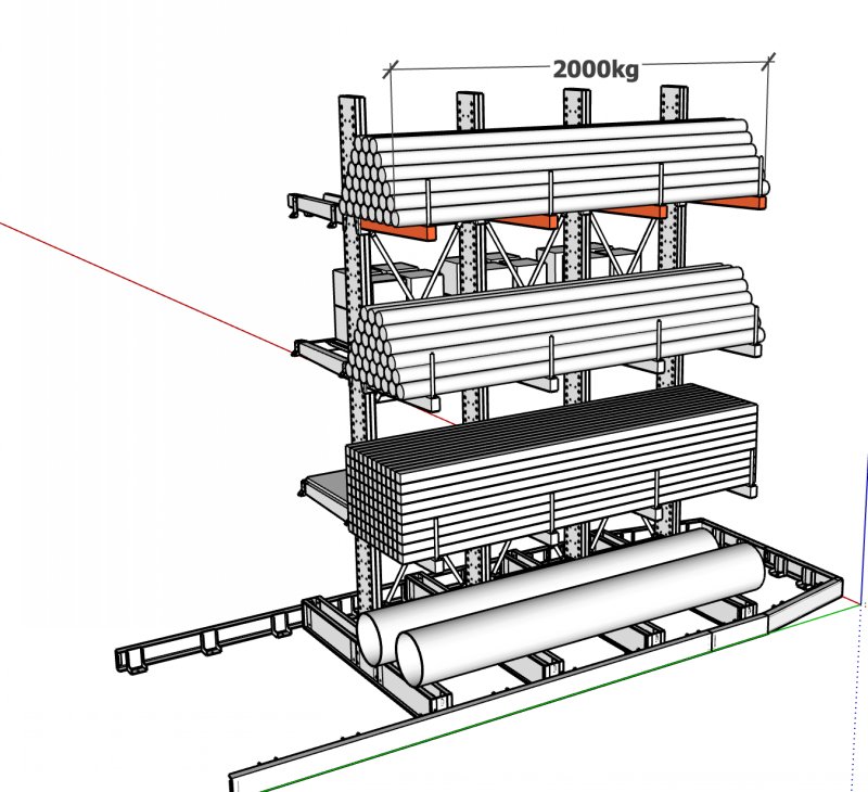 單層載重2000kg,我們設計為4個懸臂。每根懸臂載重500kg