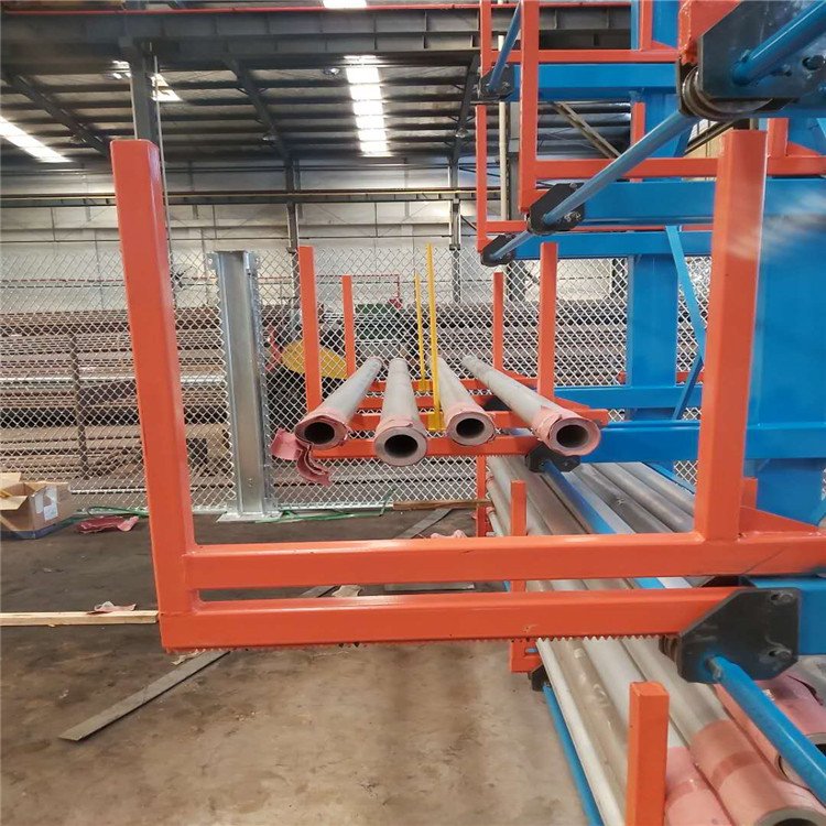 棒材存放的懸臂貨架的系統方案 伸縮懸臂式管材貨架是在懸臂式貨架的基礎上把固定懸臂升級為伸縮懸臂,這樣即使是6米、12米、17米的管材都可以使用行車直接存儲,伸縮懸臂每層的管材都能使用行車,行車也能到達想要存儲的管材面前,不用擔心中間和底層的管材擋著夠不到。 伸縮懸臂式貨架采用多層存放形式,以往不能碼放太高,容易倒塌,也擔心底層的管材腐蝕變形等情況的發生。現在使用伸縮式可以多層存放,管材也不接觸地面,不會腐蝕,每層獨立存取,上層的壓力不會帶給下層,也不用擔心變形。