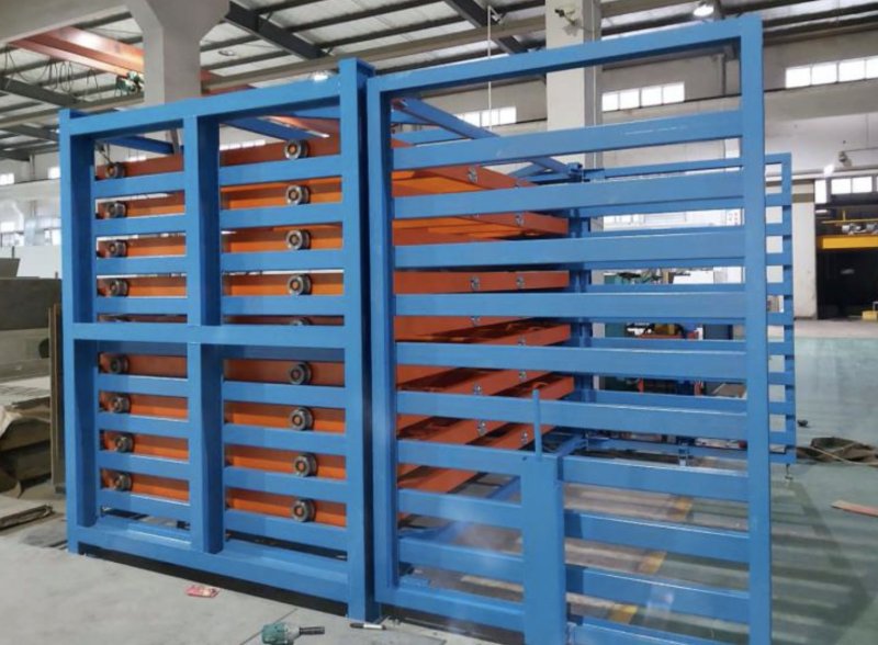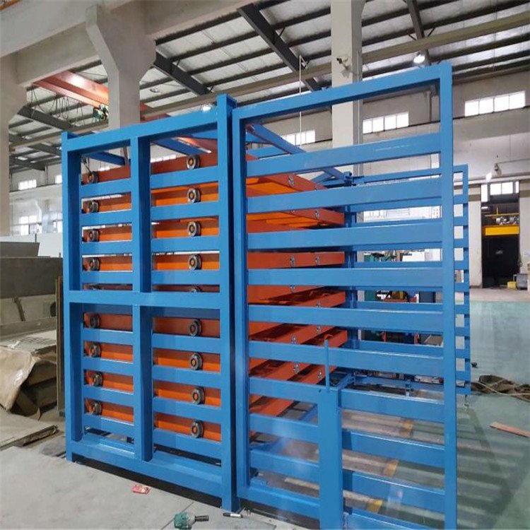 金屬板材存放貨架 板材堆放架工程項目 節(jié)省:節(jié)省大量廠房空間,抽屜式結(jié)構(gòu),可以15層存放,占地空間小,存儲量高。鋼板可以分層分類的存放在同一組貨架上,幾十種規(guī)格尺寸材質(zhì)的鋼板存放在貨架上,瞬間廠房變得寬敞 整齊 明亮,抽屜式結(jié)構(gòu)不需要叉車不需要工業(yè)巷道。天車存放節(jié)省人力,單人可以完成所有的操作,存取速度快,節(jié)省時間。 安全:鋼板存放在地面上占用的空間大,各種規(guī)格的鋼板都堆放在一起雜亂無章,容易磕磕絆絆,上面的鋼板還容易滑動,存在安全隱患,鋼板比較鋒利,人工存取還容易劃傷操作者,存在人員安全隱患。鋼板存放架還可以保護(hù)板材,防止鋼板在運輸中帶來損耗,特別是貴重金屬板材防止劃傷 刮傷 卷邊等情況的發(fā)生。 方便:鋼板存放架采用抽屜式結(jié)構(gòu),每層抽屜單獨拉出,方便鋼板的存取,特別是中間的鋼板也可以直接存放,不受上層或下層鋼板抽屜的影響,讓存取使用更方便。抽屜高標(biāo)準(zhǔn)拉出,操作方便。 快捷:鋼板存放架使用天車存放鋼板,存取速度快捷,鋼板直接存取,幾十種鋼板擺放在不同的抽屜里,貨物一名了然,不用浪費過多的時間,快速的存放所有使用的鋼板,不用反復(fù)整理挪動,讓廠房空間迅速寬敞起來。