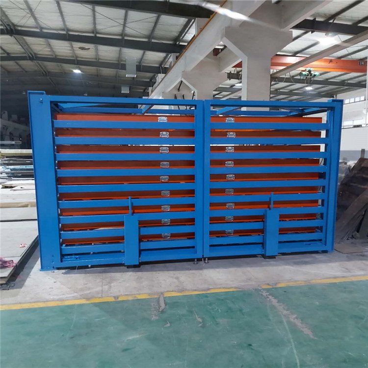 鈑金倉庫使用的貨架 抽屜式鋁板存放架多層分類存放不同的鋁板,單人操作,存取速度快,安全性好,板材都存放在抽屜里部會劃傷操作者和行人,有效保護板材不被劃傷卷邊變形。 抽屜式鋁板存放架鋁板平著存放在抽屜里,一組貨架由2-8個抽屜組成,可以存放8種不同類型的鋁板,分類存放方便工人取用,如0.6與0.8的板材不好區分,但分層存放后就不會放混下錯料。每種規格的都單獨存放占用的空間太大,浪費車間,多層抽屜可以提高8倍的存儲量,減少8倍的占地空間