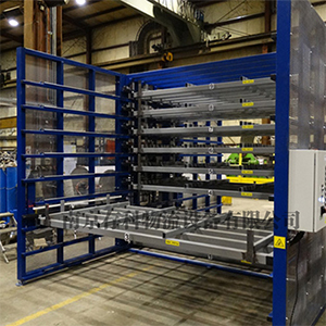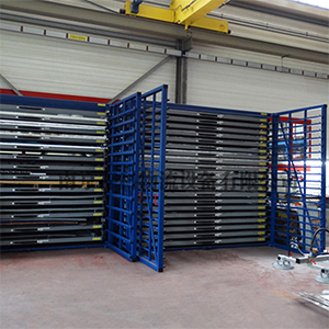 平放板材貨架,采用的是抽屜式結構,分類清楚,盤點方便,每層抽屜可承載板材的重量在三噸。利用吊車存取板材,減少損耗和浪費,節省人工成本的投入。